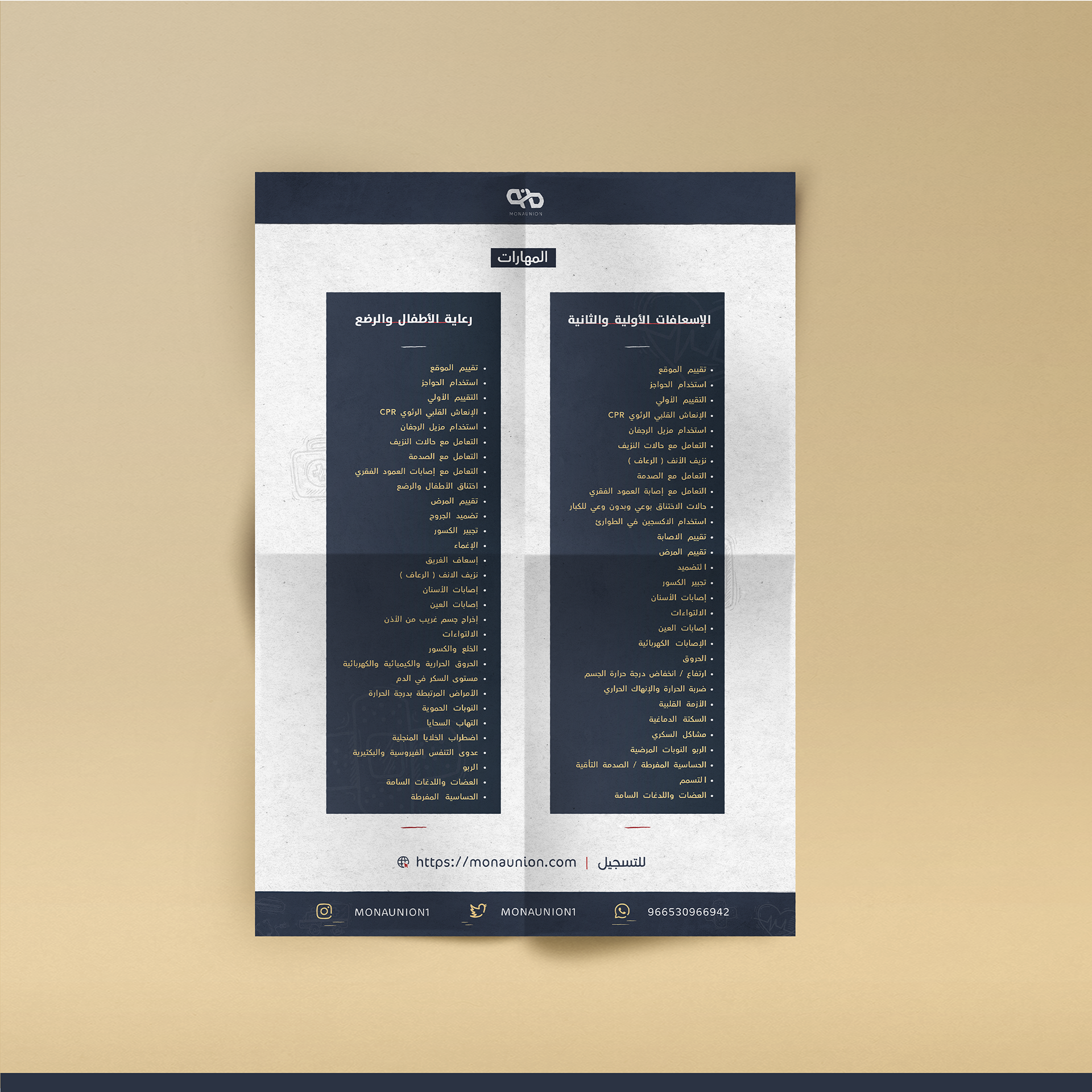إعلان إقامة دورات جديدة دورات الإسعافات الأولية والثانية